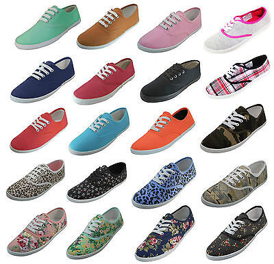 New Women's Classic Plimsoll Sneaker Lace Up Fashion Casual Canvas Shoes, Colors, Sizes 5-11