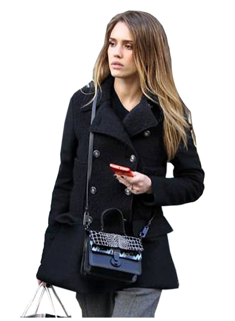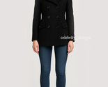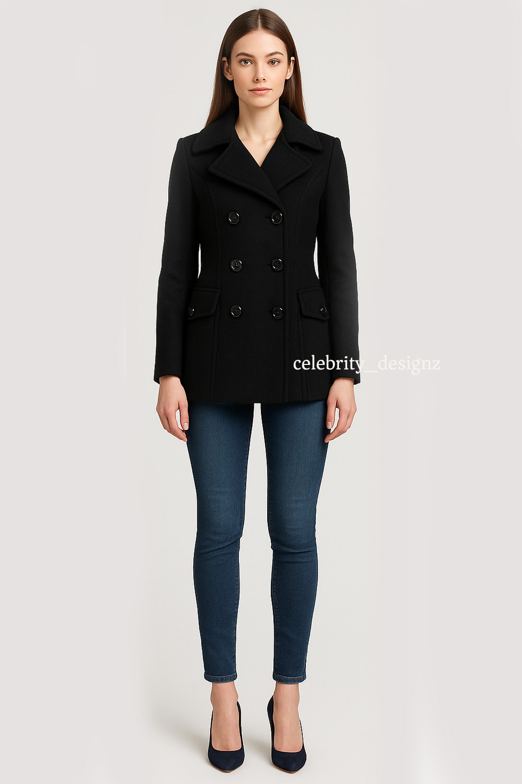 wc8s Celebrity Fashion Lookbook Classic Double Breasted Black Wool Pea Coat (#190598996003)