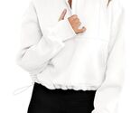 - Womens Half Zip Pullover Sweatshirt White Fleece Crop Top with Pocket Size XL