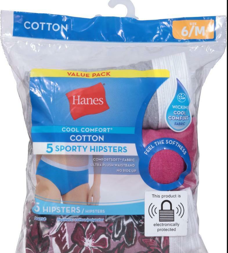 - Womens Hanes Cotton Sporty Hipsters 5 Pack 6/MED