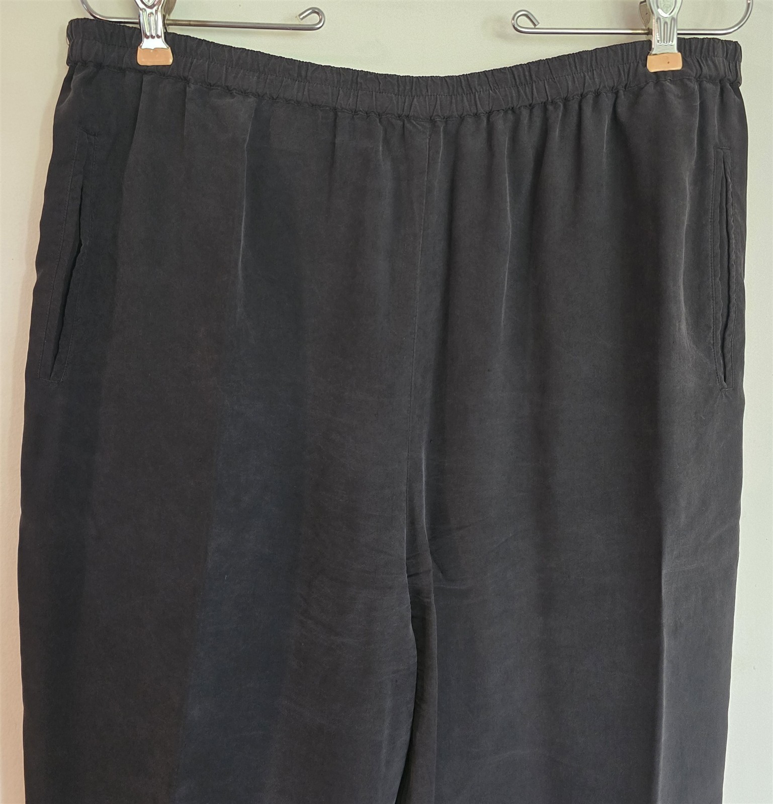 Womens L/XL Real Clothes Saks Fifth Avenue Black 3-Pc Silk Outfit Pants Shirt +