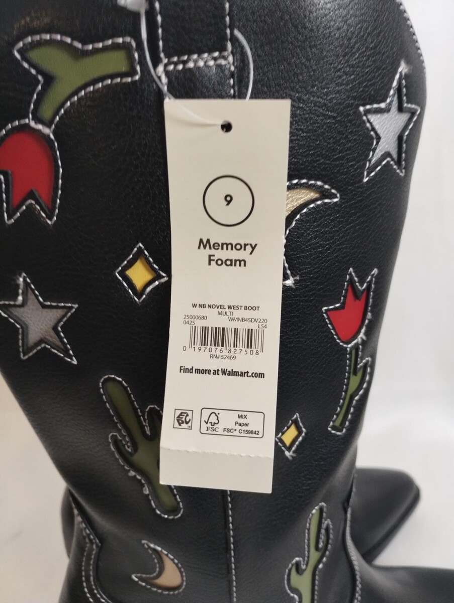 - Womens No Boundaries Black Cowgirl Western Boots Novelty Cactus Moon Star 9 New