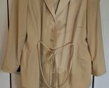 This sale is for a womens two piece skirt suit set, tan, good to excellent used condition, no rips, no tears, no stains, 95% polyester, 5% elastoester, jacket measures approximately 23" straight across armpit to armpit (bust), skirt measures approximately 18" straight across waist by 38 1/2" long, from a smoke free home.