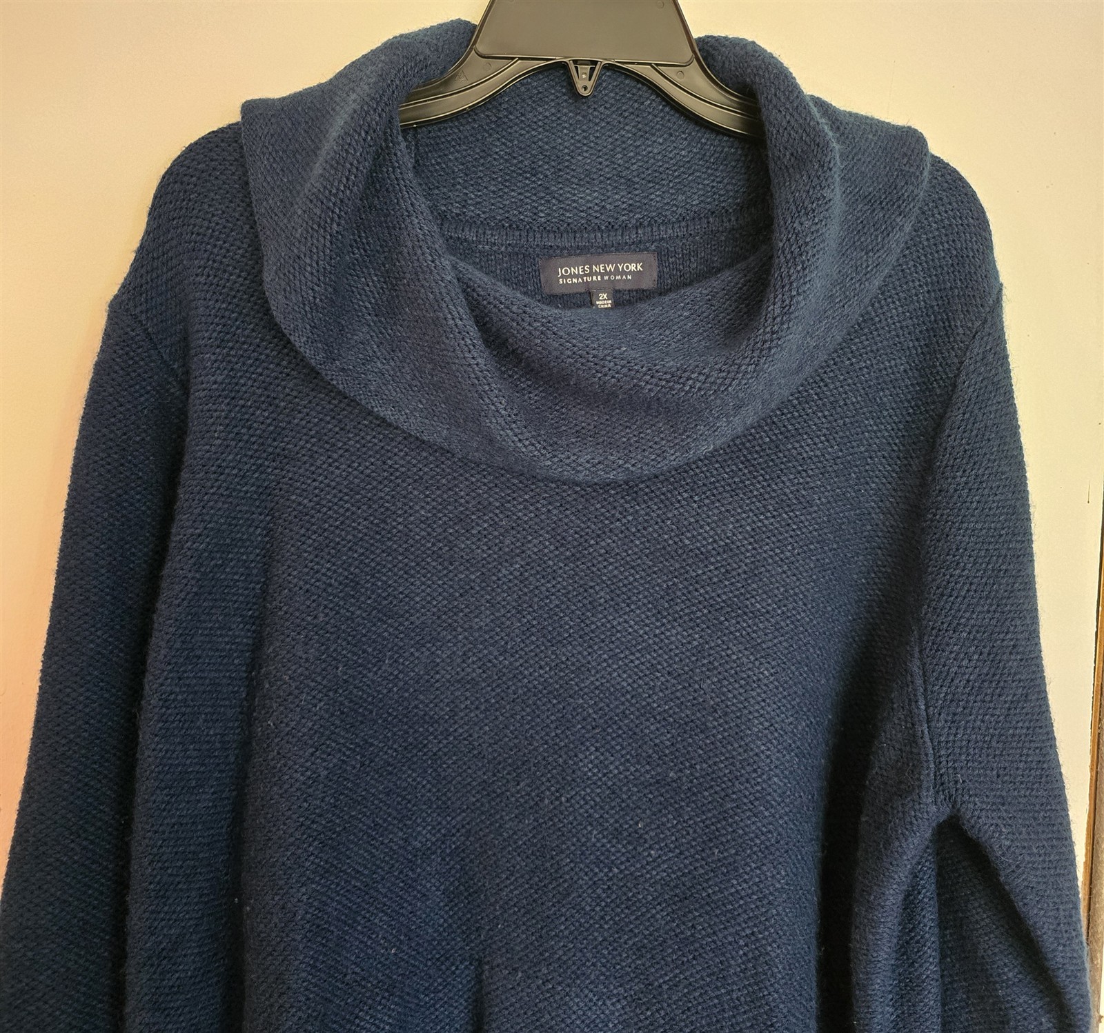 - Womens Plus 2X Jones New York Blue Cowl Neck Knit Sweater