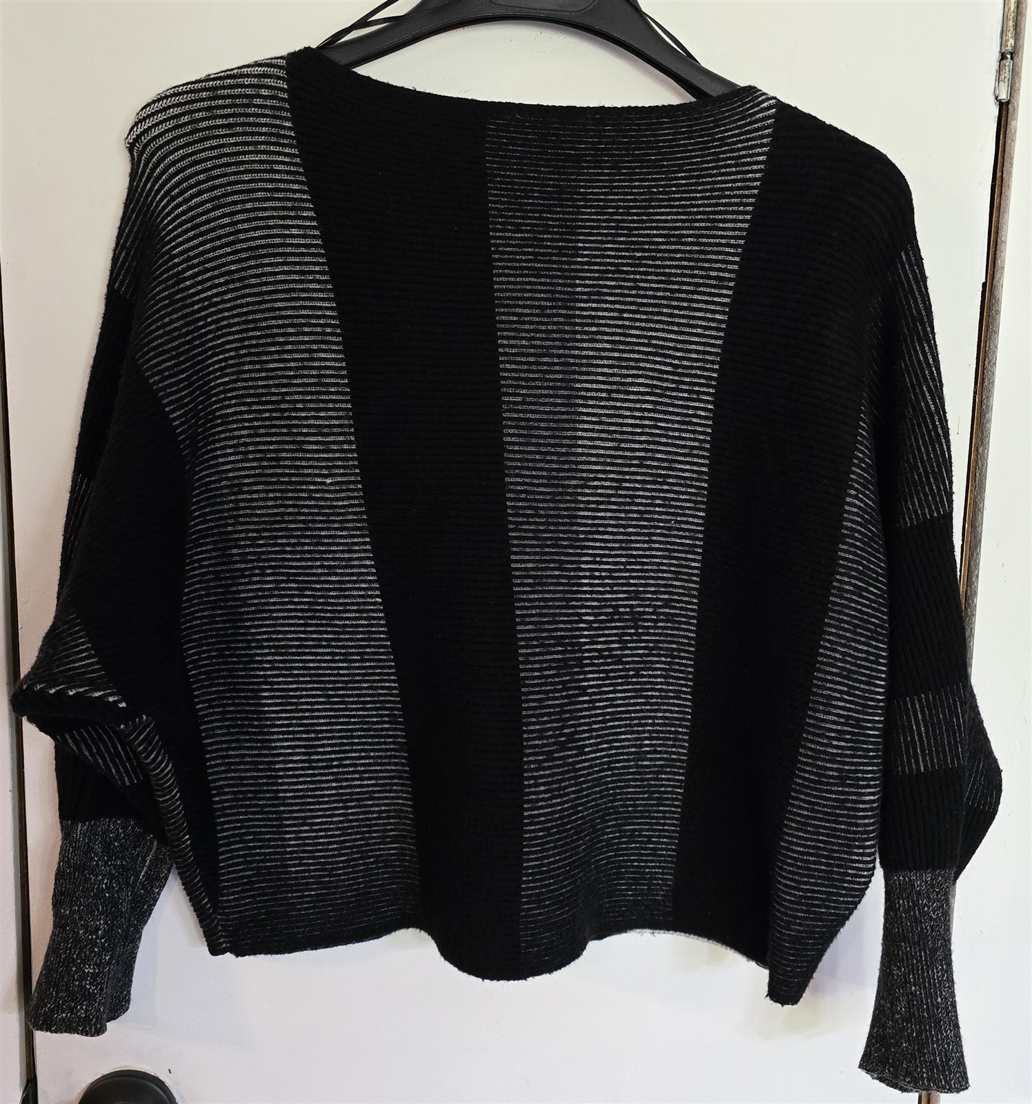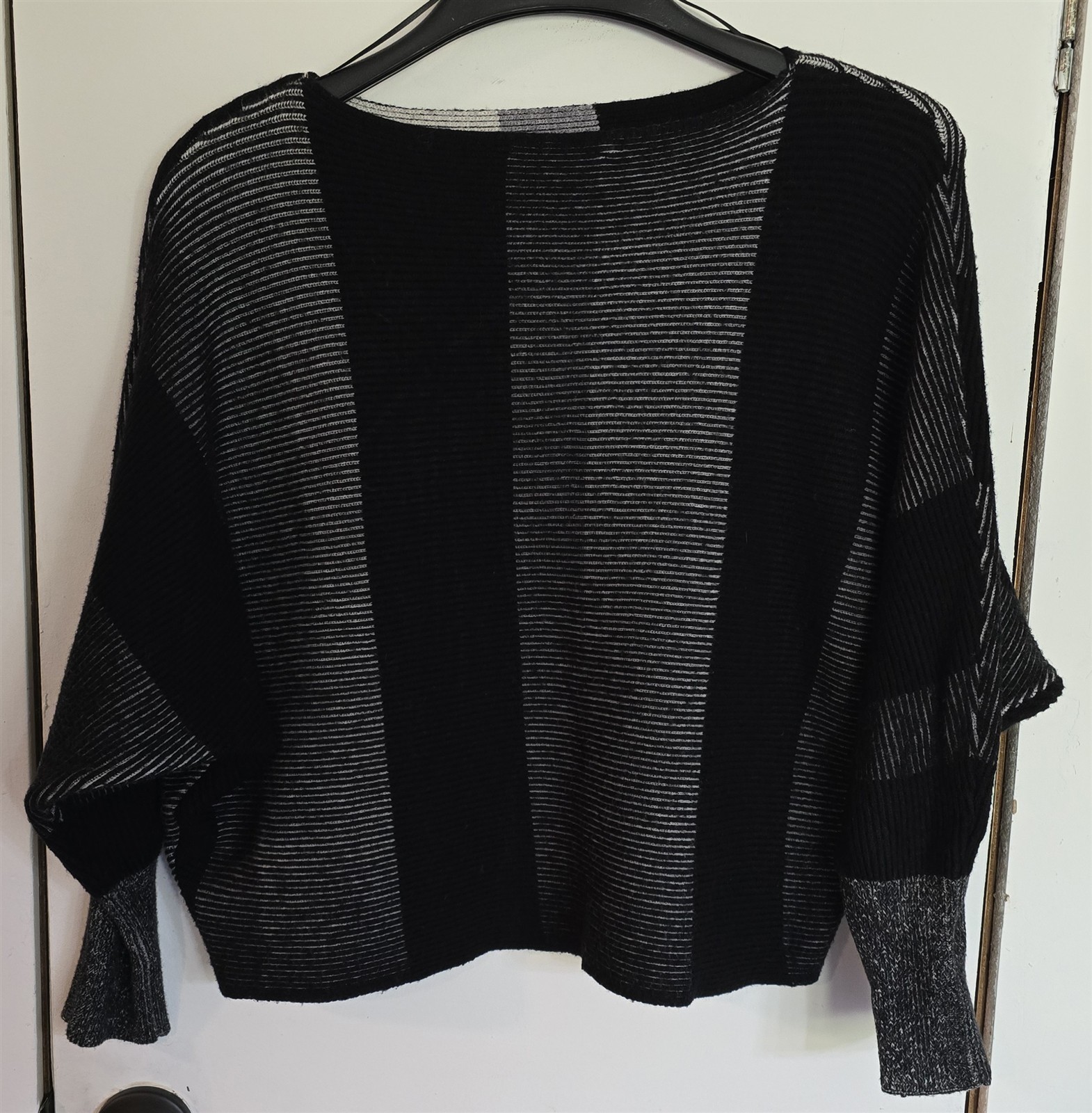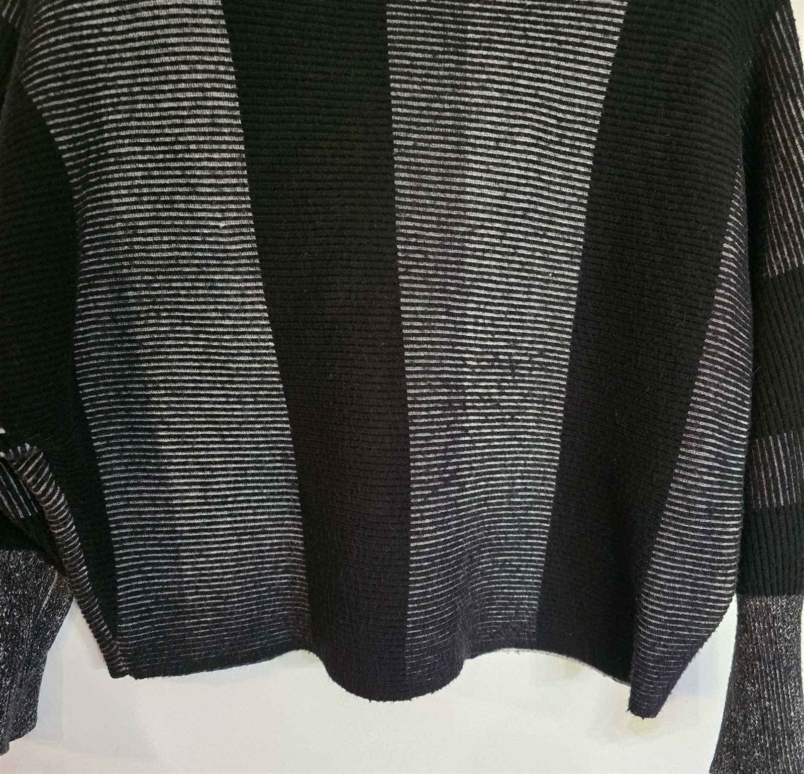 Womens Plus 2X Philosophy Gray & Black Oversized Cropped Slouchy Knit Sweater