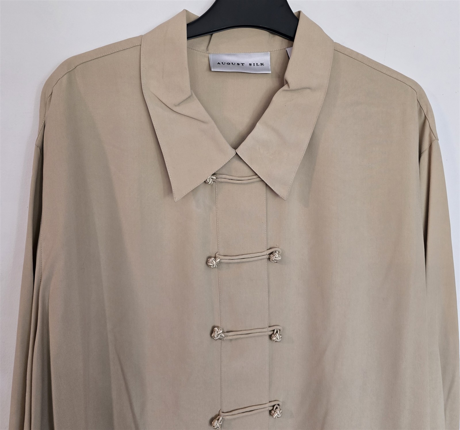 - Womens Plus 3X August Silk Tan Long Sleeve Shirt Top Blouse