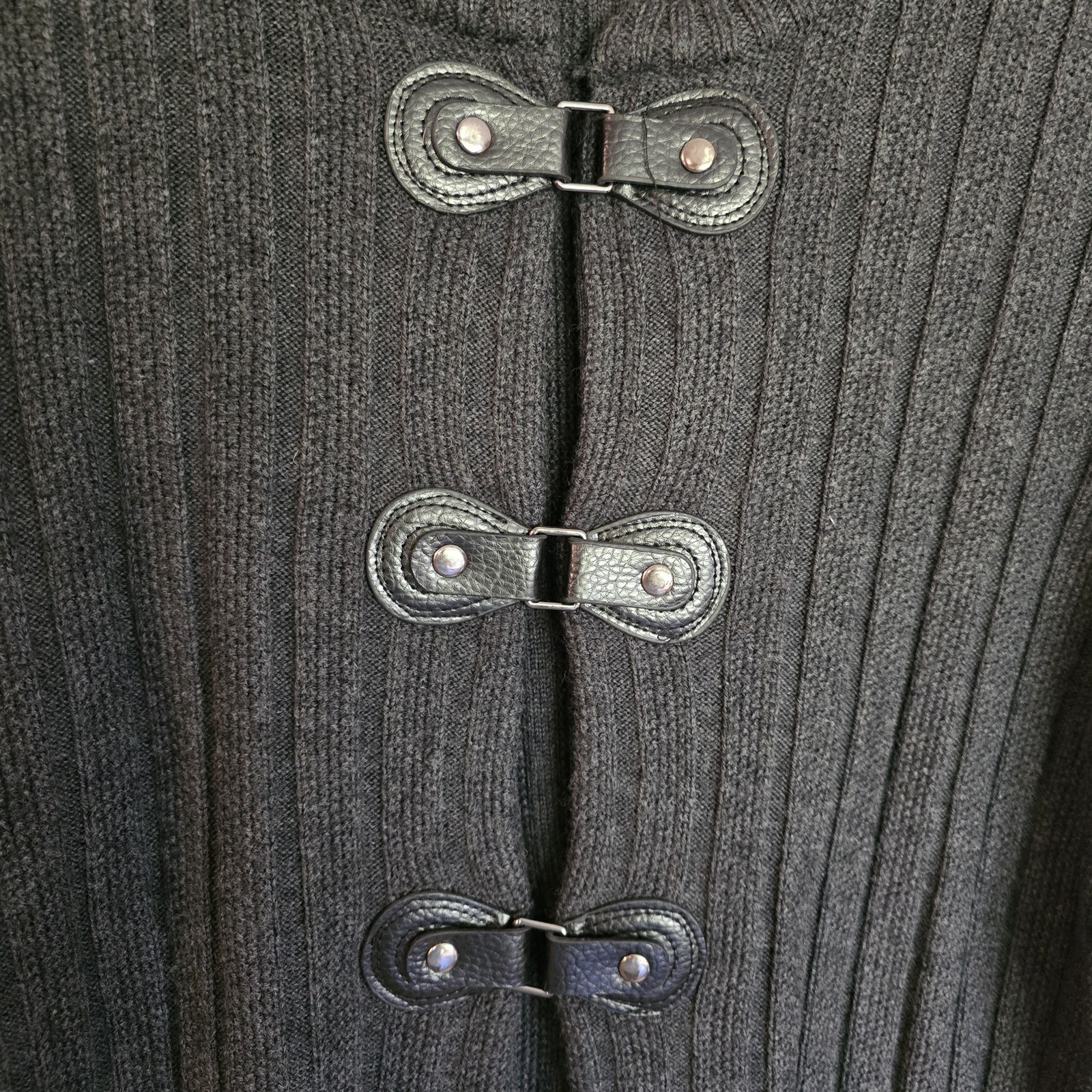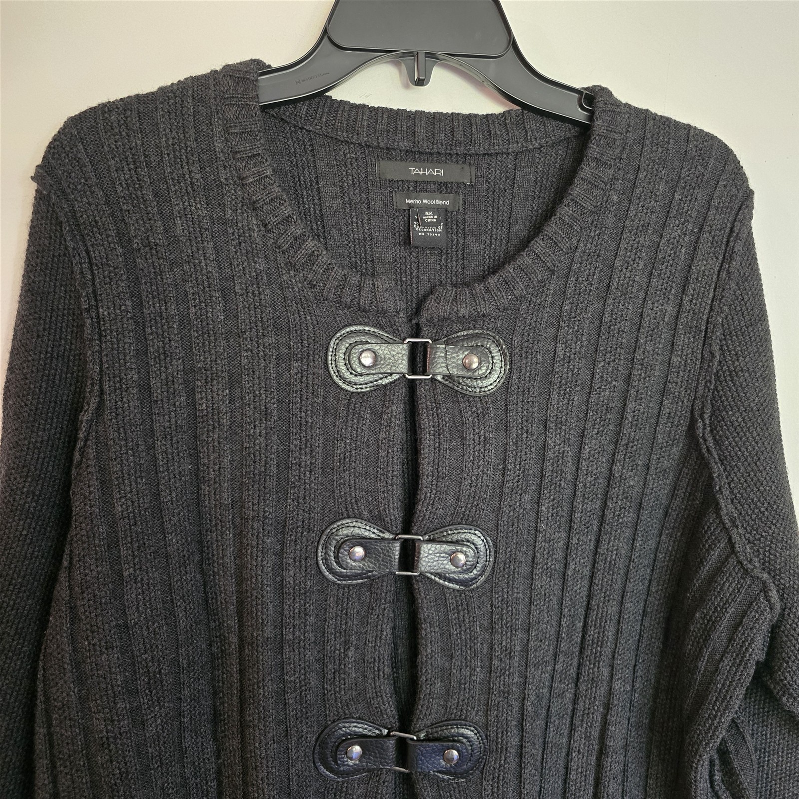 - Womens Plus 3X Tahari Dark Gray Button Up Merino Wool Blend Cardigan Sweater