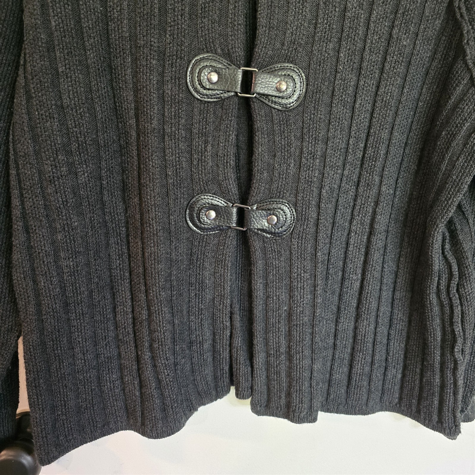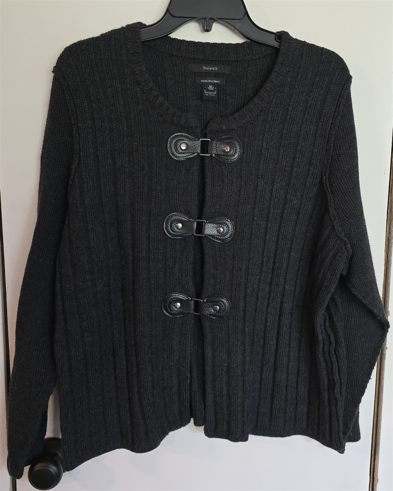 Womens Plus 3X Tahari Dark Gray Button Up Merino Wool Blend Cardigan Sweater