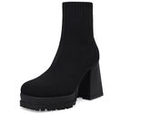- Womens Sock Boots Platform Chunky Heel Ankle Booties Square Toe Slip On Size 8