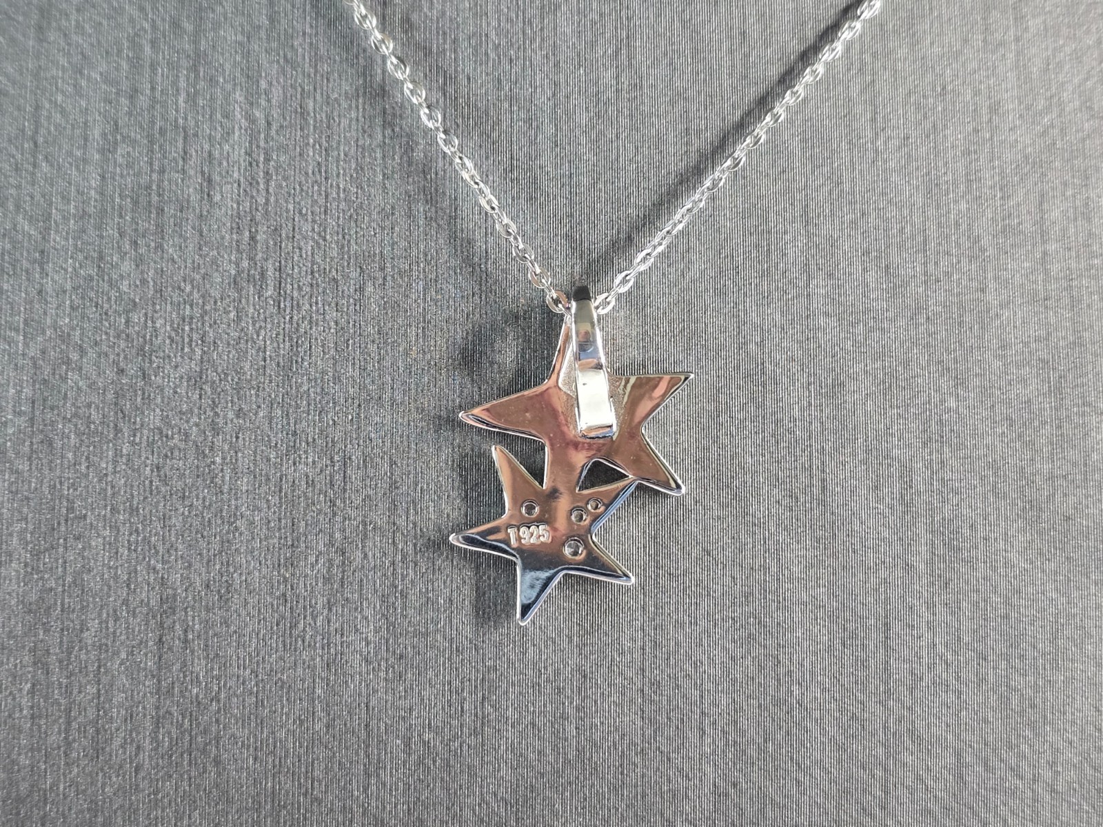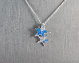 Womens Sterling Silver Blue Opal Star Pendant Necklace 3.8g E6894
