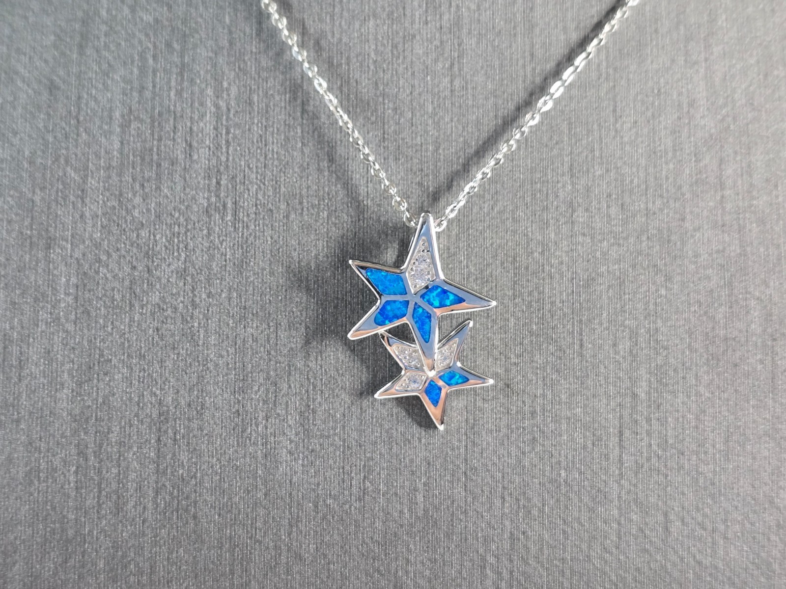 - Womens Sterling Silver Blue Opal Star Pendant Necklace 3.8g E6894