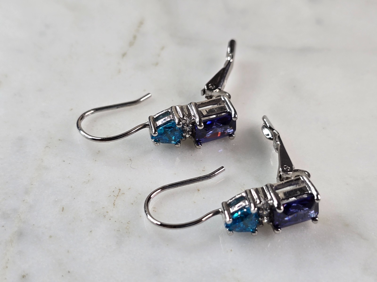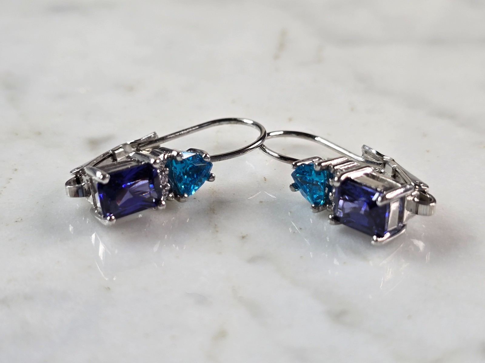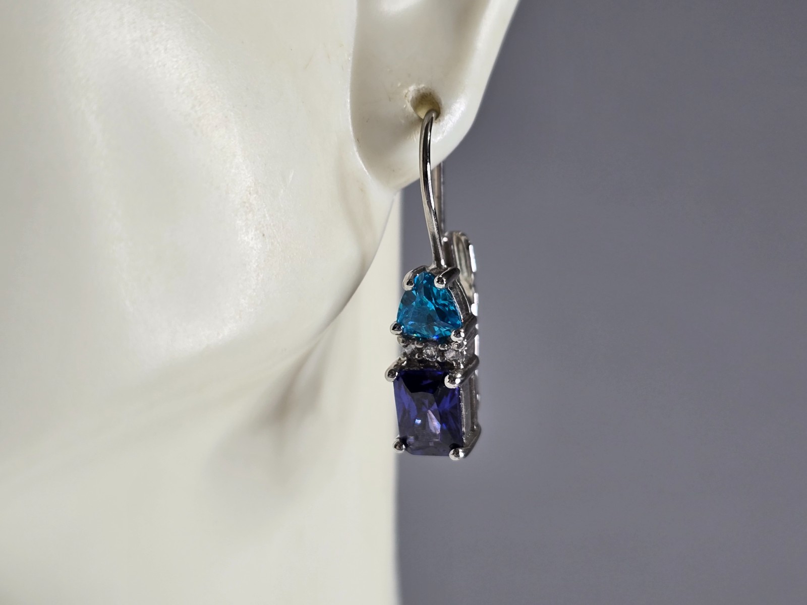 - Womens Sterling Silver Tanzanite Aquamarine Earrings 4.8g E3686