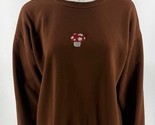 Womens Sweatshirt Top Size Small Brown Embroidered Mushroom Pullover
