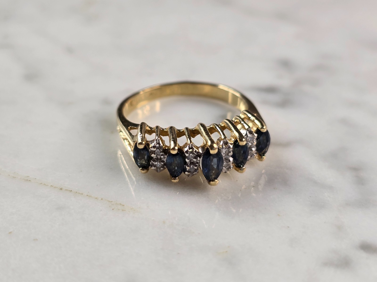 - Womens Vintage Estate 14k Yellow Gold Diamond Spinel Ring 3.2g E4233