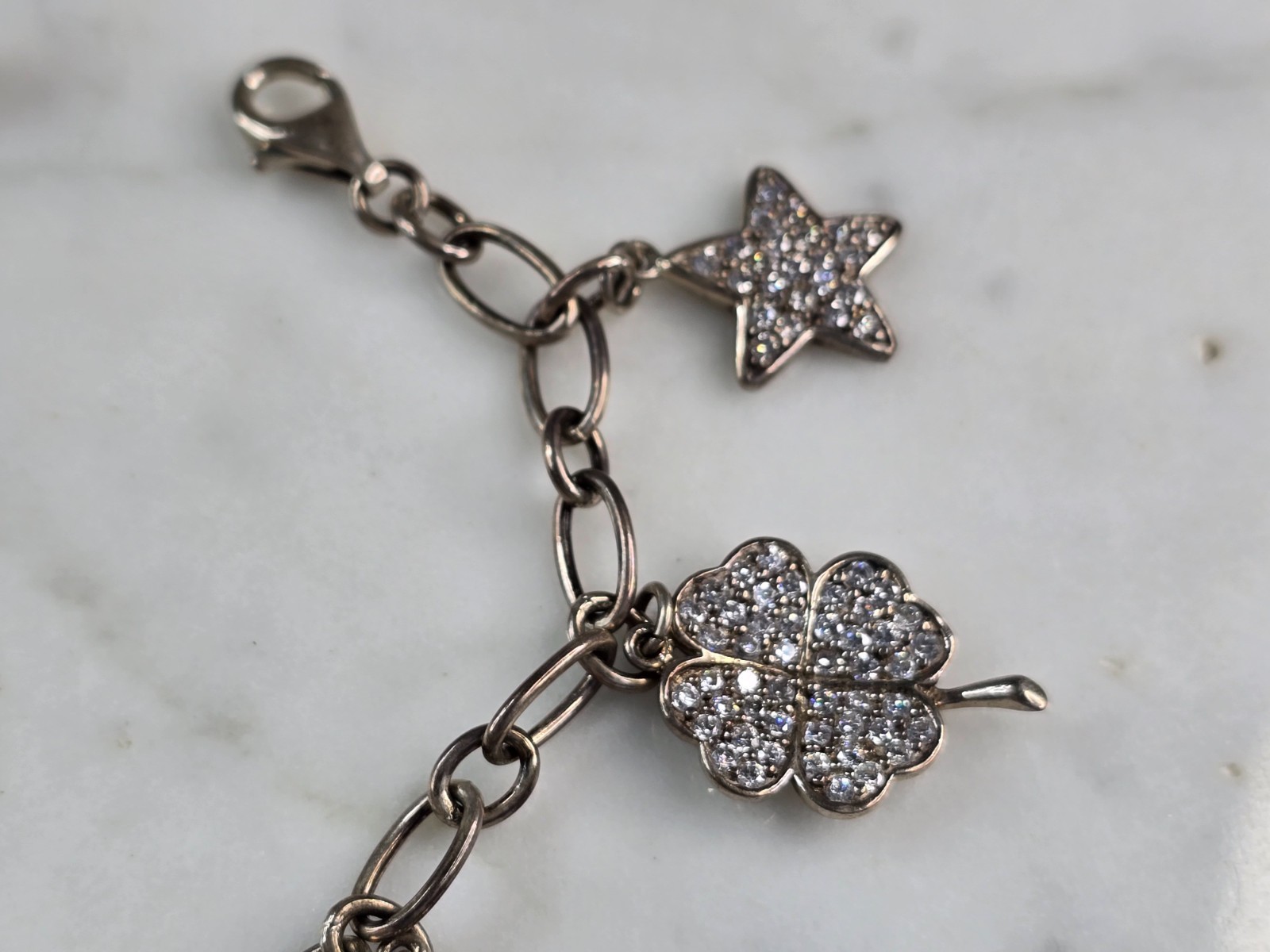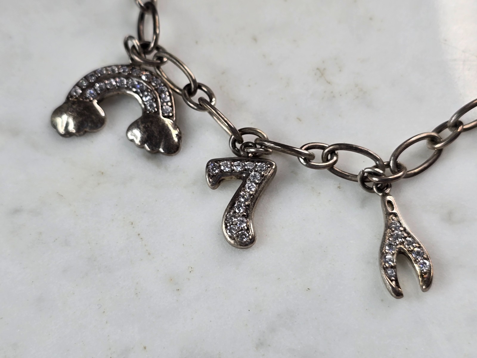 - Womens Vintage Estate Sterling Silver Lucky Charm Bracelet 17.7g E4955