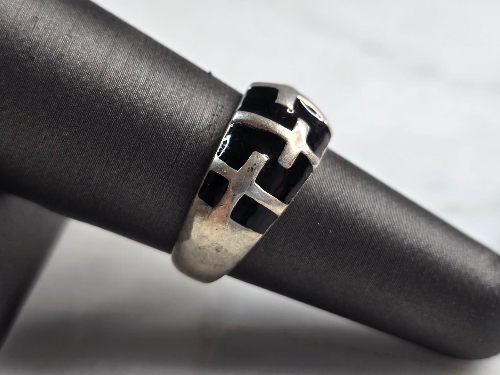 - Womens Vintage Estate Sterling Silver Modernist Onyx Cross Ring 5.7g E4971