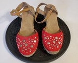 Womens White Mountain Red Espadrilles W/Mirrored Dots Wedge Ankle Strap Sz 8 M