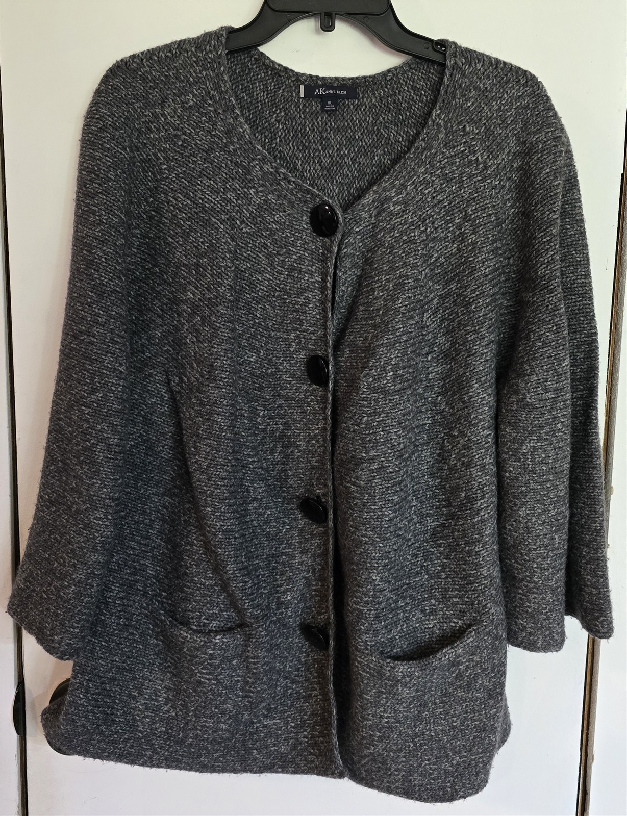 - Womens XL Anne Klein Dark Multitone Gray Button Up Cardigan Knit Sweater