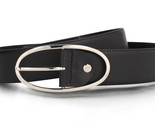 - Womens vegan belt apple skin black casual elegant oval buckle clasp square tip