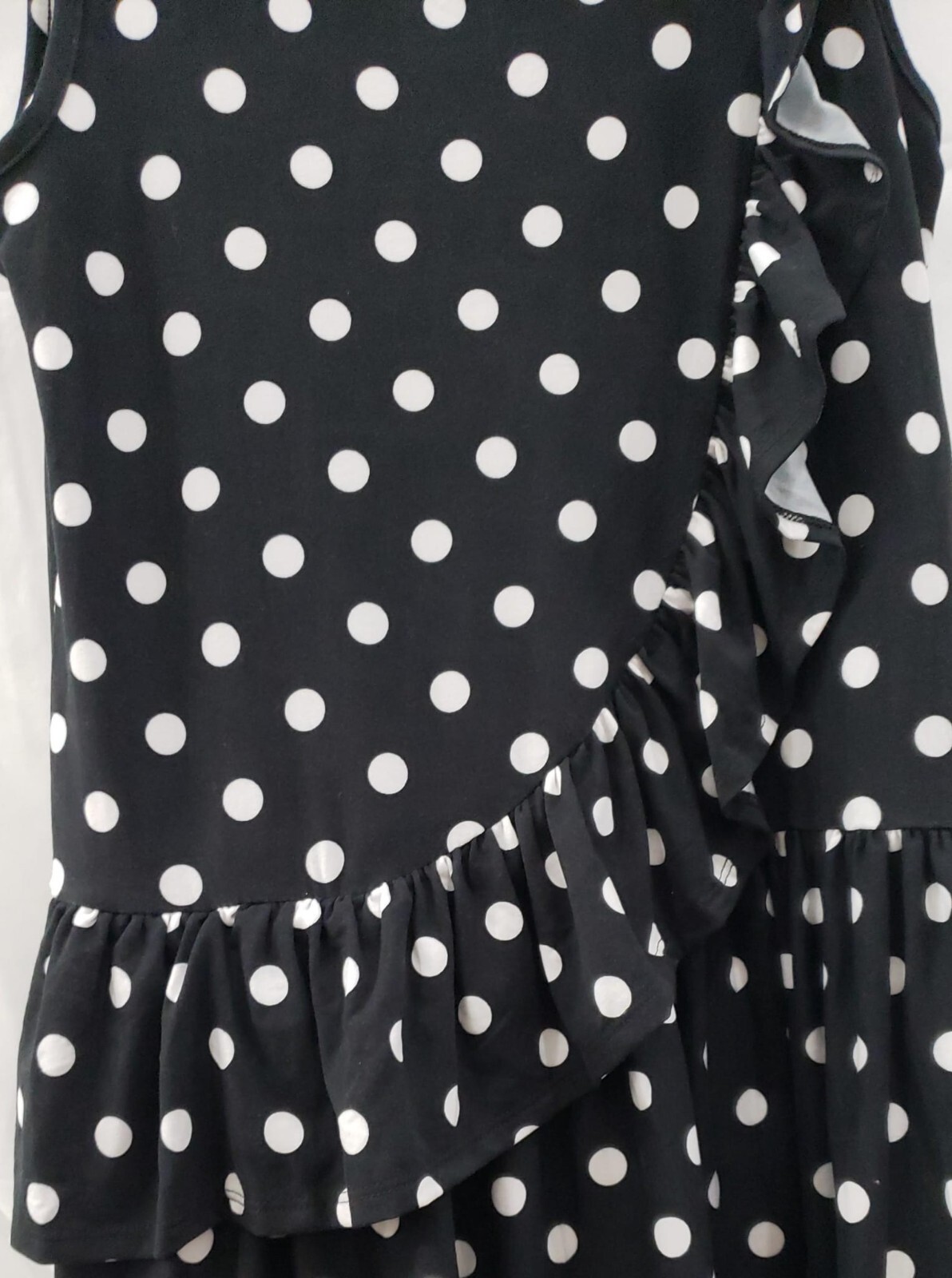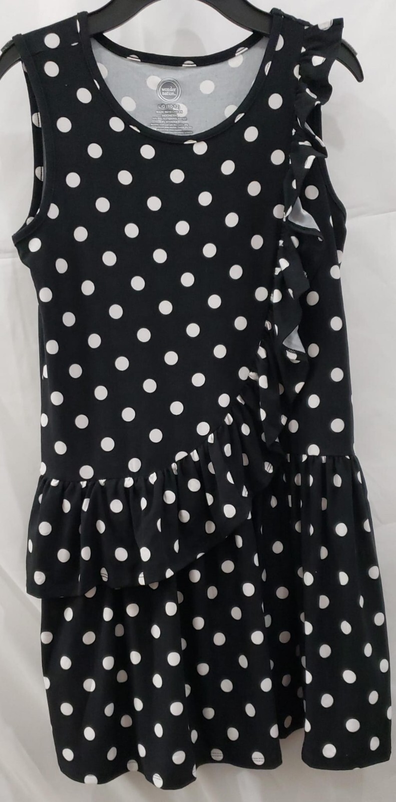 - Wonder Nation Girls Asymmetric Ruffle Dress, Black/White Dots Size L/G(10-12)