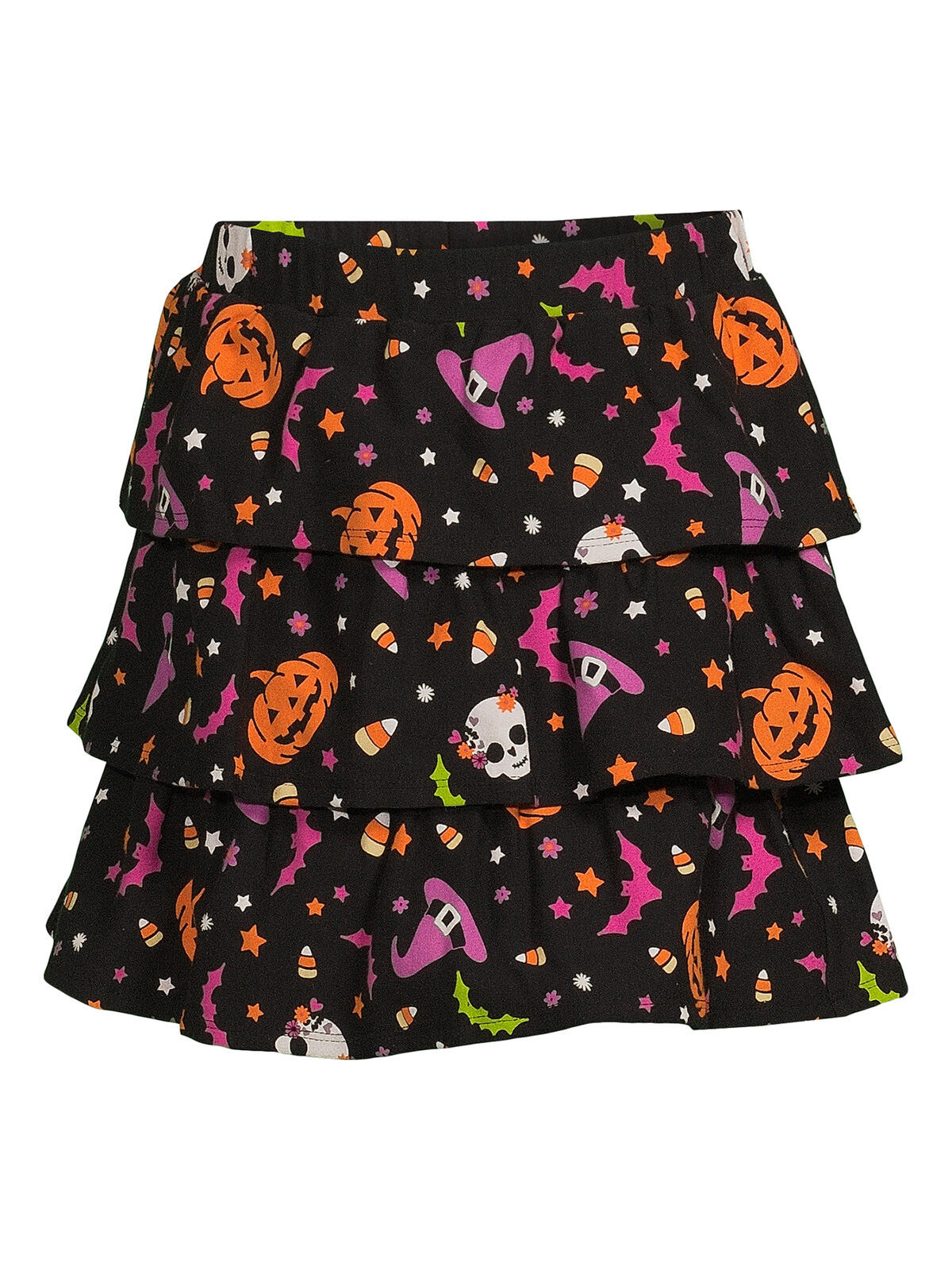 - Wonder Nation Girls Halloween Print Tiered Skirt Black Soot XL (14-16)
