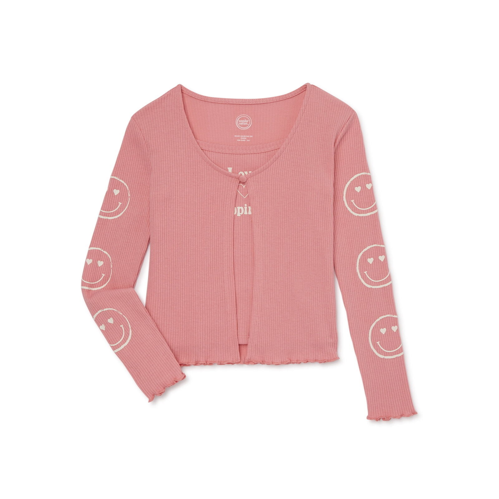 - Wonder Nation Girls Ribbed Cardigan and Cami Top Set, 2-Piece, Size S (6-6X)