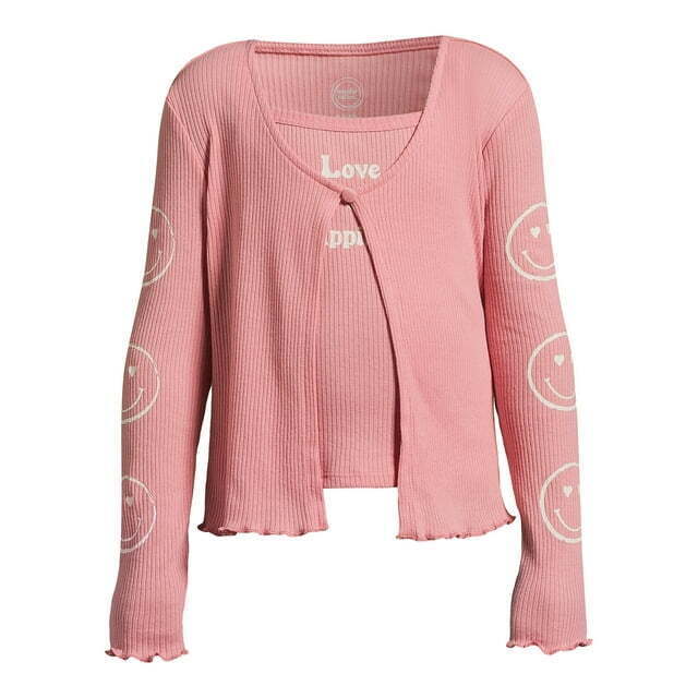 - Wonder Nation Girls Ribbed Cardigan and Cami Top Set, 2-Piece, Size XL (4-5)
