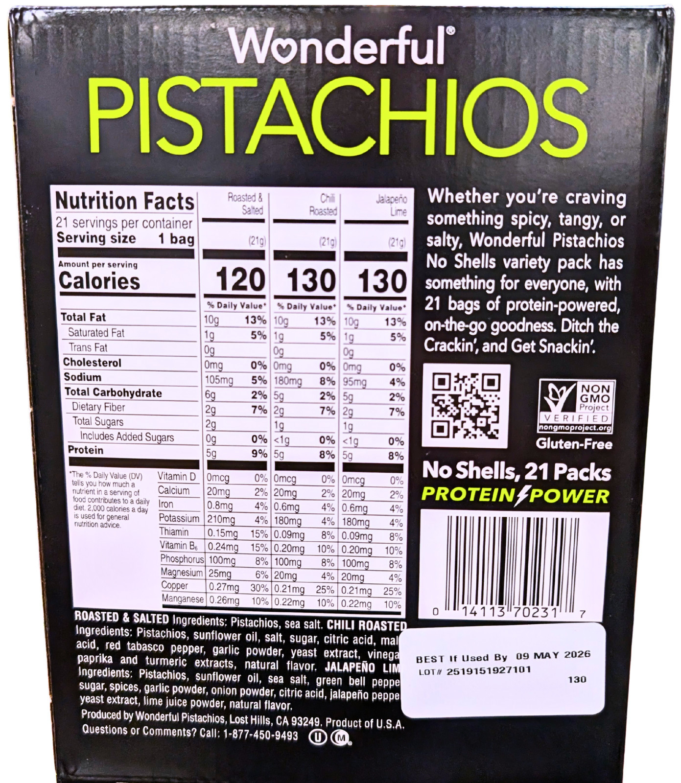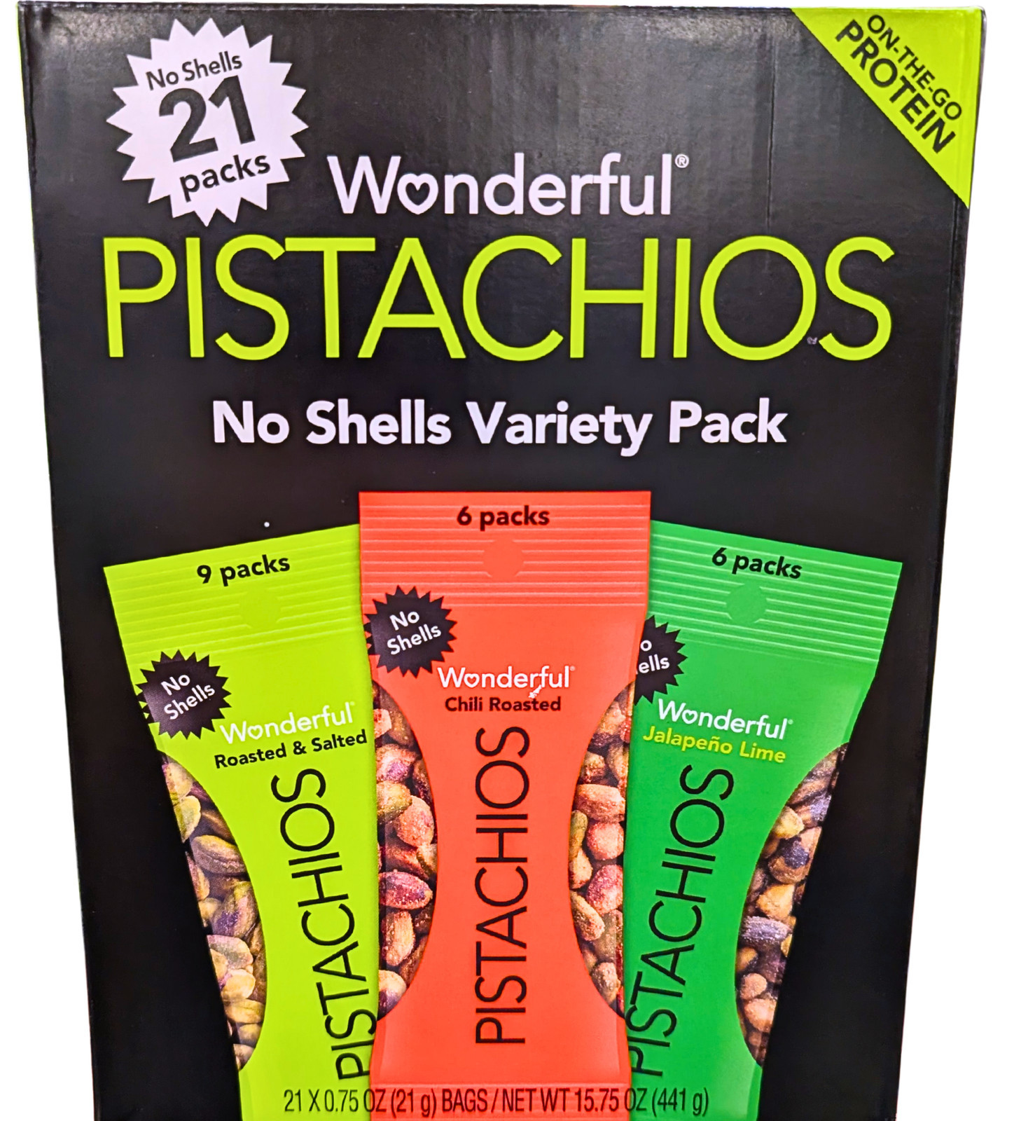 - Wonderful Pistachios Variety Pack 21 x 0.75 Oz EXP 05/2026