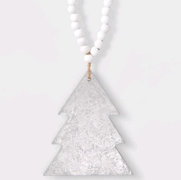 - Wondershop 4" Tree With Beaded Hanger Christmas Tree Ornament Silver