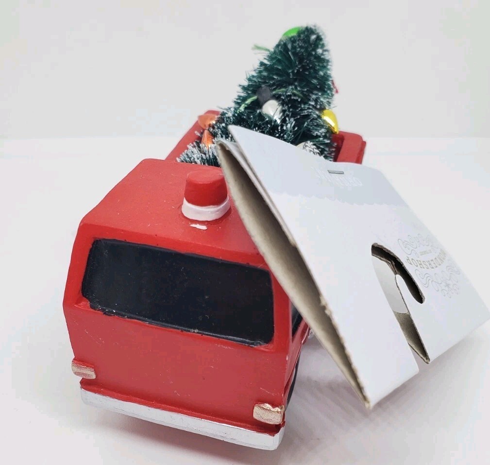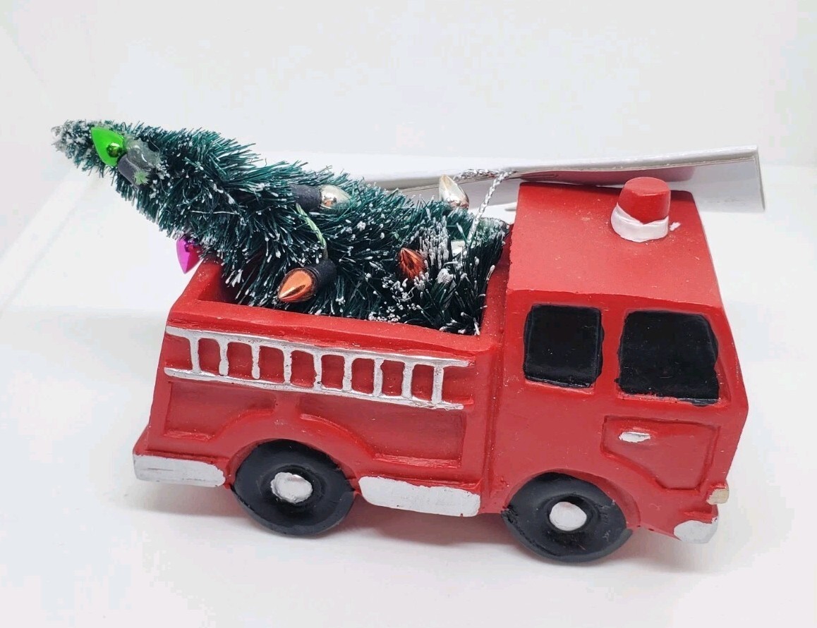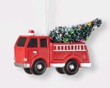 The Wondershop Fire Truck Christmas Tree Ornament is a small, red resin ornament measuring 4 inches in length and 2 inches in height. It features a hanging design and is part of a collection of decorations under the theme of trucks. Perfect for Christmas, this ornament weighs 5 ounces and is a decorative and festive addition to any holiday decor.
