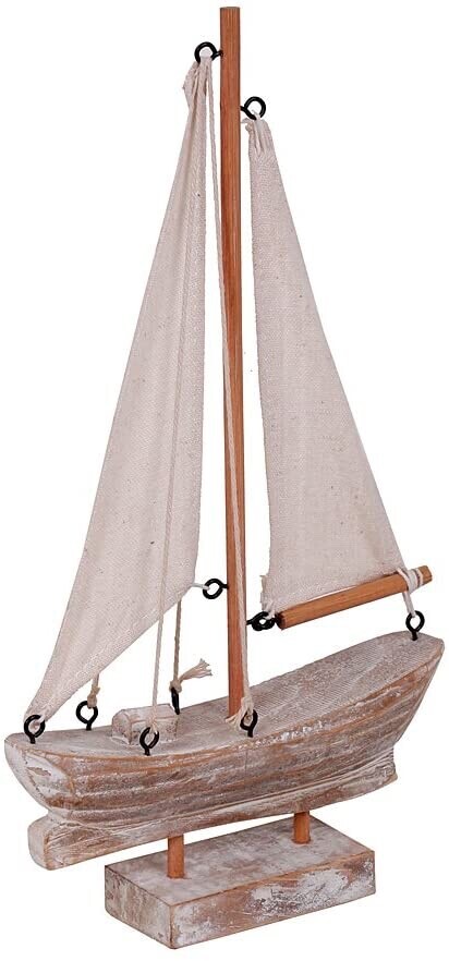Small Wood Sailboat: Features a wood stand on the bottom for easy to place, durable and stable. A very nice small piece to accompany a seaside theme in room