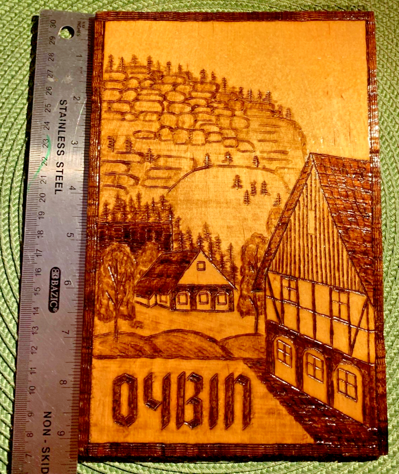 - Wood Burning Plaque, Oybin, Germany Scene, RARE [e-01]