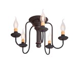 Wired with five Candelabra sockets. Textured black arm color. Sturbridge colors that have been slightly distressed. 60 watts max per socket.