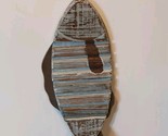 This wood fish wall hanging features rustic folk art design, making it a charming addition to cabin wall decor. Handcrafted in China, this piece adds a touch of unique style to any space. The intricate detailing and craftsmanship of this wall hanging create a visually appealing focal point for your home. See Pictures for size, Normal wear