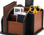 6-Compartment Wooden Revolving Office Supplies Desktop Storage Organizer