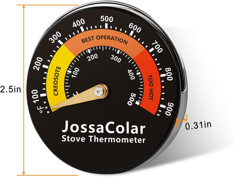 ?Monitor Stove Burning Efficiency?Jossacolar Woodstove thermometer can be placed on the top or pipe of the stove to accurately monitor fire place temperature, helping you to optimize the efficiency of the woodstove combustion. It can remind you to add the wood or strove the fire