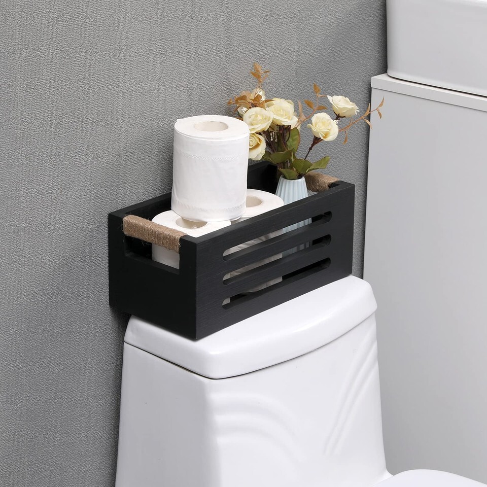 - Wood Toilet Paper Holder Basket with Handles Black 12x5.9x4.9in Black