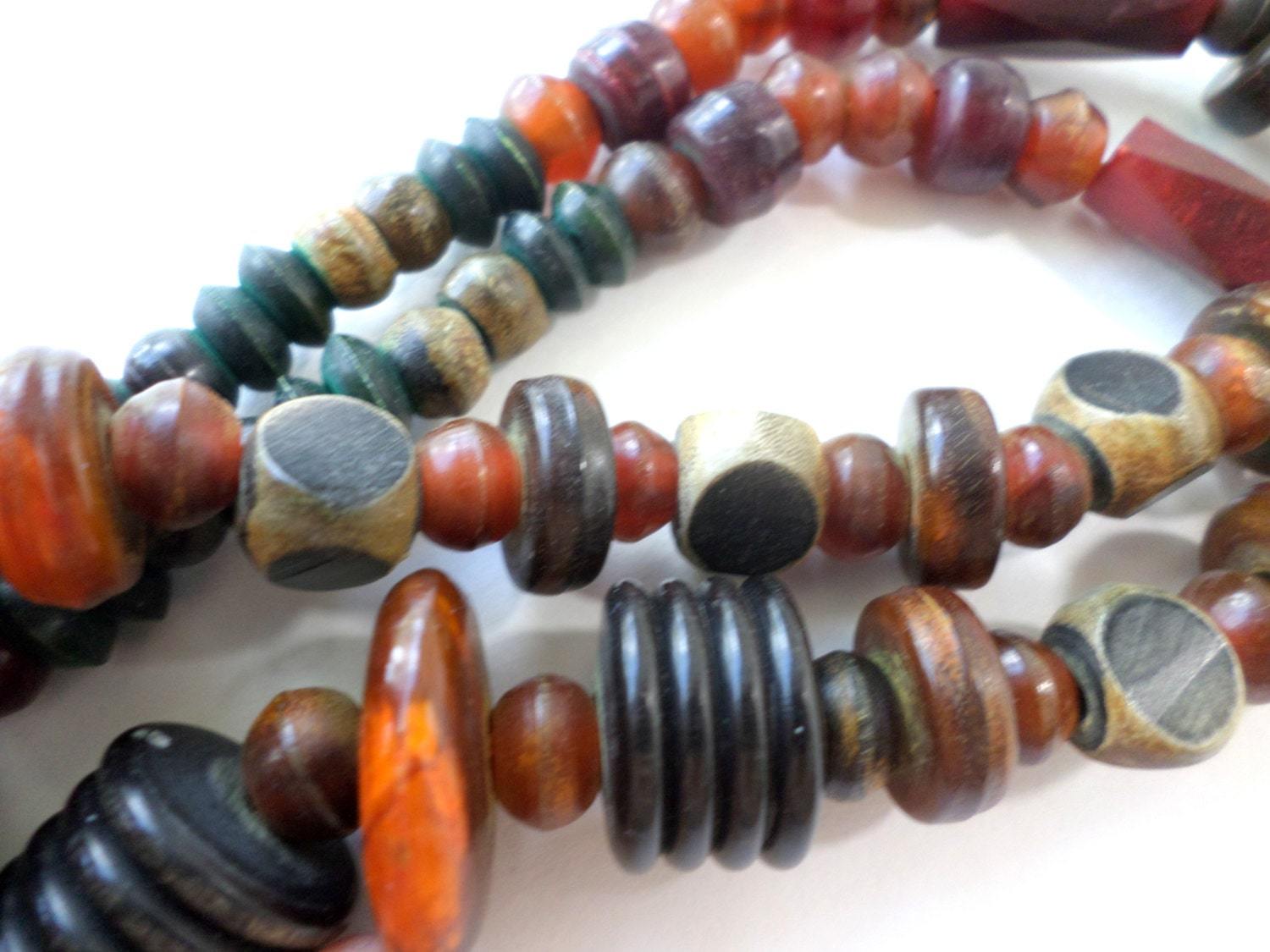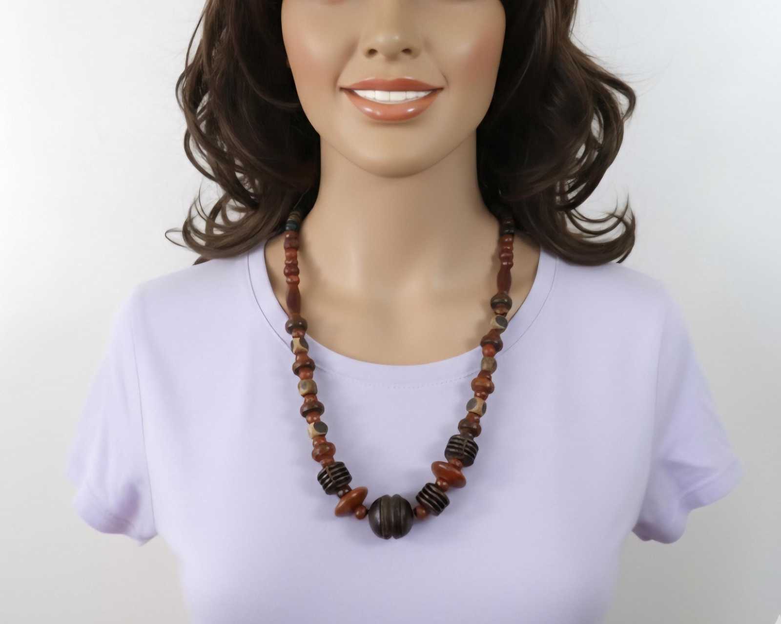 ?Style/Features: Perfect earth or neutral tones mixed material, lightweight stained wood beads of different sizes strung on cotton, composite accent beads, hook ring clasp