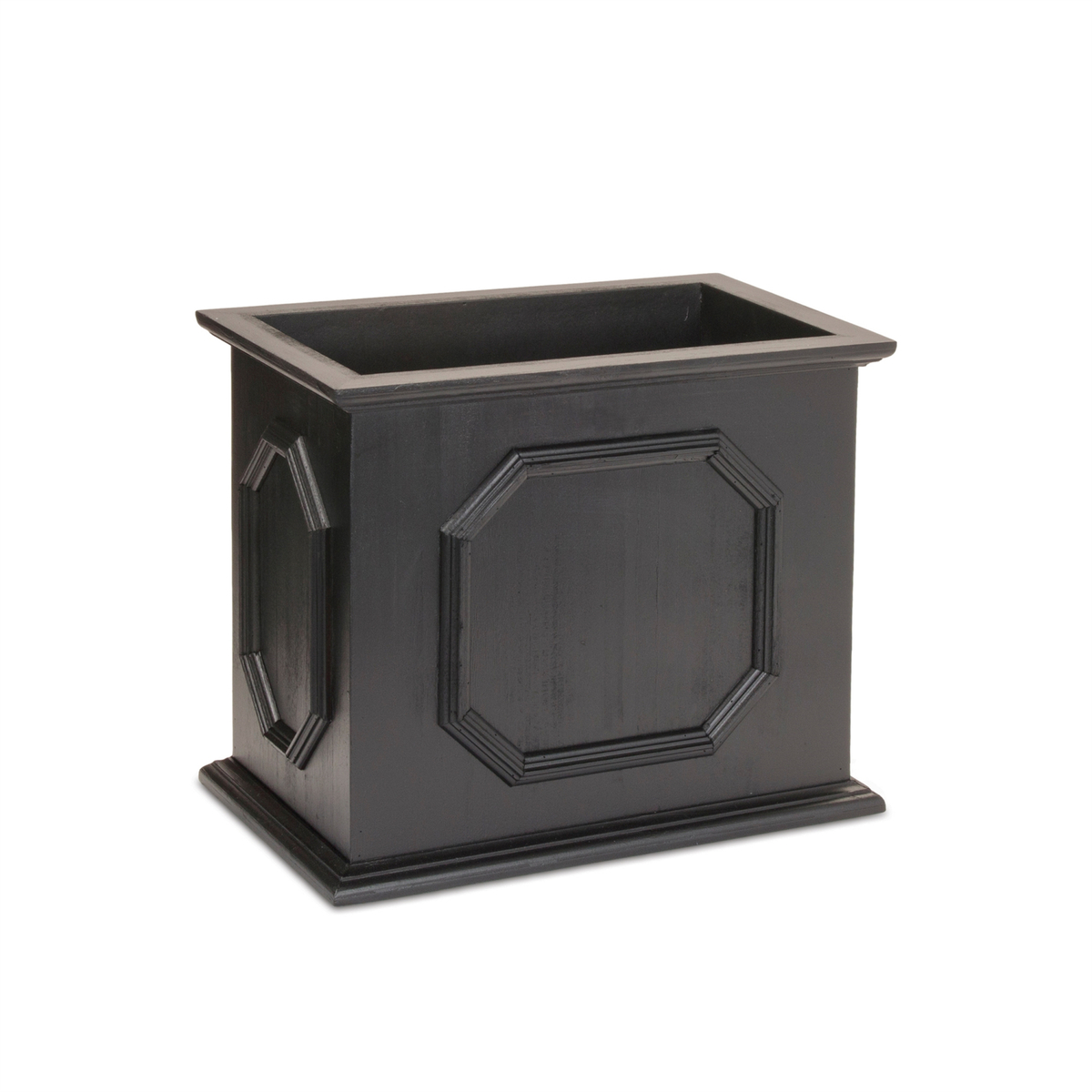 Classic Black Tone: A bold, neutral color that complements any decor Traditional Box Planter Shape: Timeless design for a refined aesthetic Perfect for Potted Plants or Topiaries: Ideal for both real and faux plant arrangements Suitable for indoor use only
