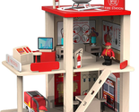 - Wooden Fire Station Playset, Multicolor 3-Level Pretend Play Dollhouse with Figu