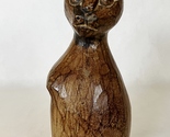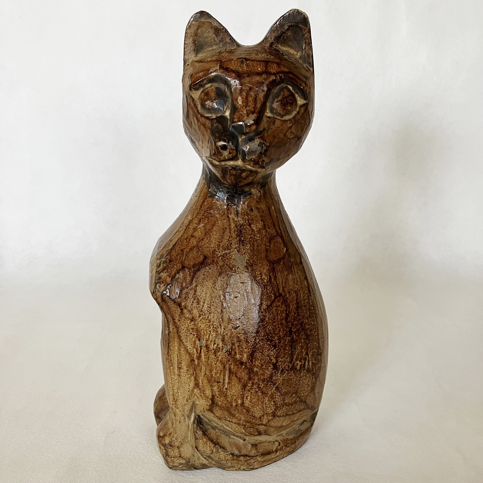 - Wooden Kitty Cat Statue Figurine Carved Wood Sculpture Sitting Animal Brown Cute