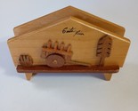 This handcrafted wooden napkin holder is a charming addition to any dining table, featuring a Costa Rican shabby theme with a brown wood grain pattern. Made from natural wood, this napkin holder is perfect for adding a touch of rustic elegance to your home decor. Its unique design and handcrafted quality make it a standout piece for any occasion, whether you're hosting a dinner party or simply looking to spruce up your kitchen. Normal wear. Sizes are approximate.