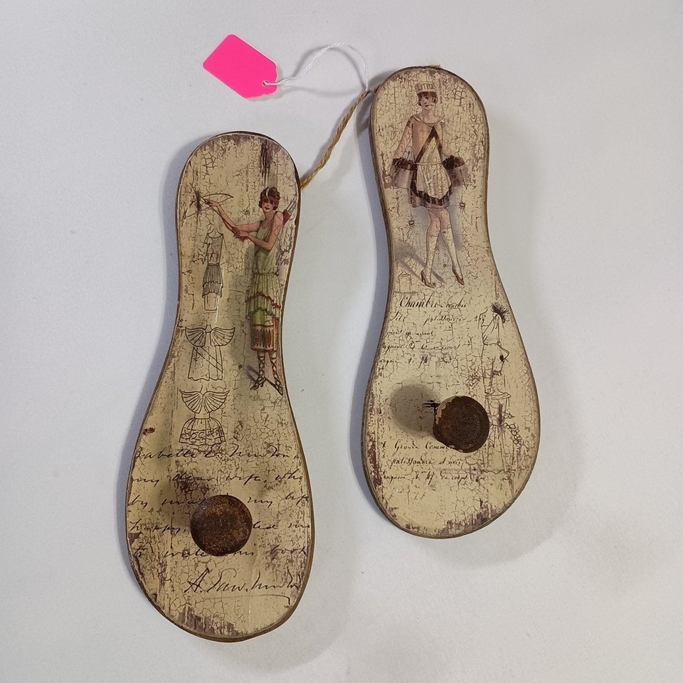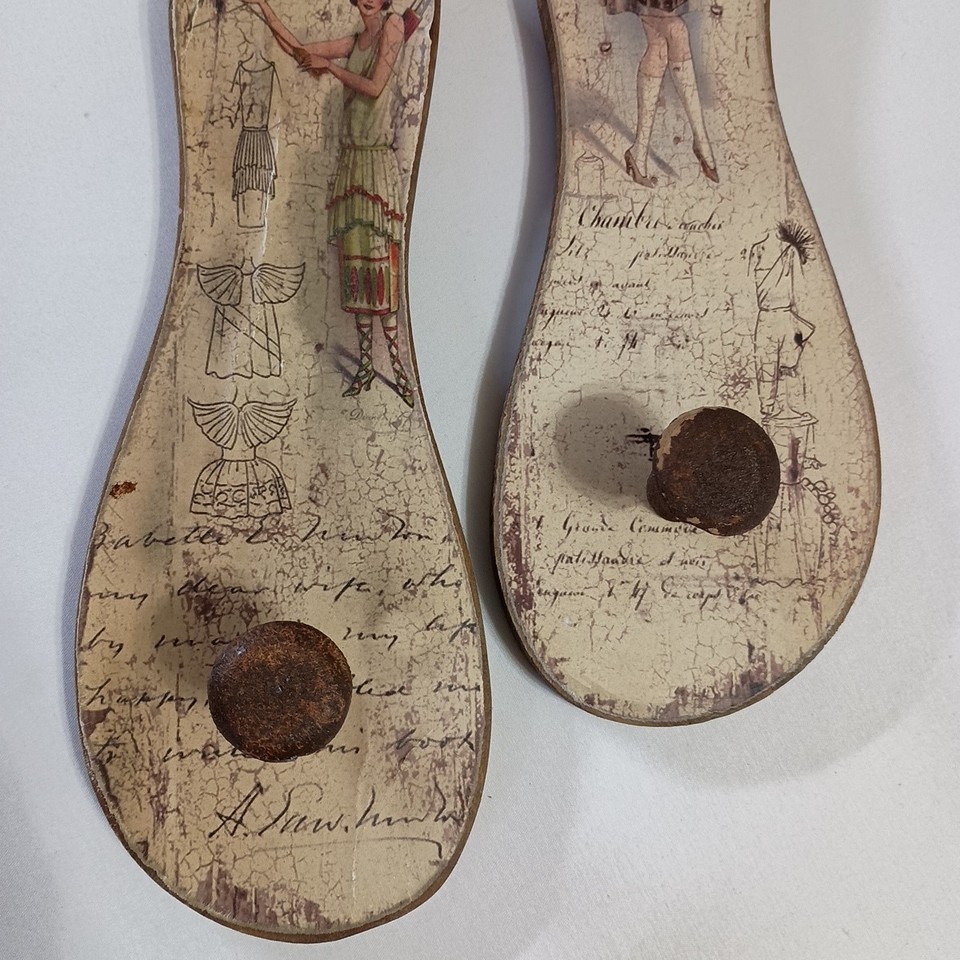 - Wooden Sandals Decorative Folk Art Wall Hanging With Pegs Rustic Home Decor