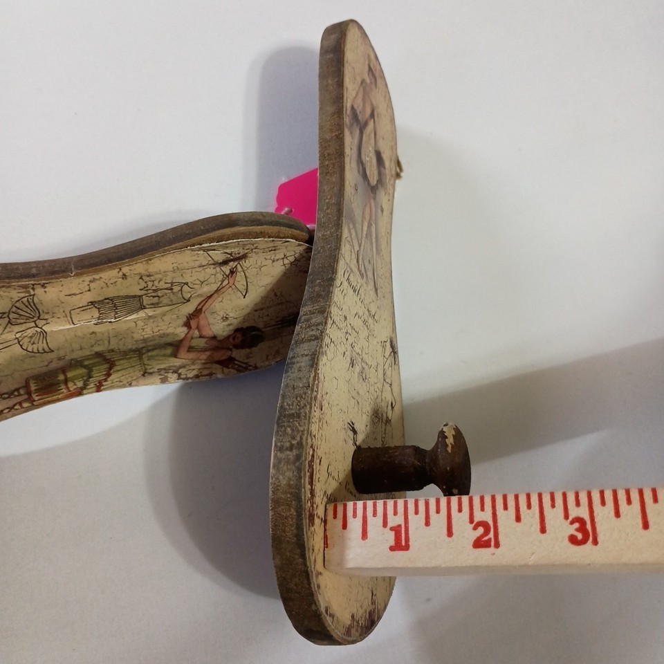 Wooden Sandals Decorative Folk Art Wall Hanging With Pegs Rustic Home Decor