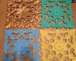 Handmade Handcrafted Teak Wood Engraved Wall Art Distressed paint look Set of 4 Pcs of 30x30 cms each. Copper, Blue, Chalk Green, and Chalk Yellow are Something so unique and different, these classy pieces will adorn your wall in opulence.