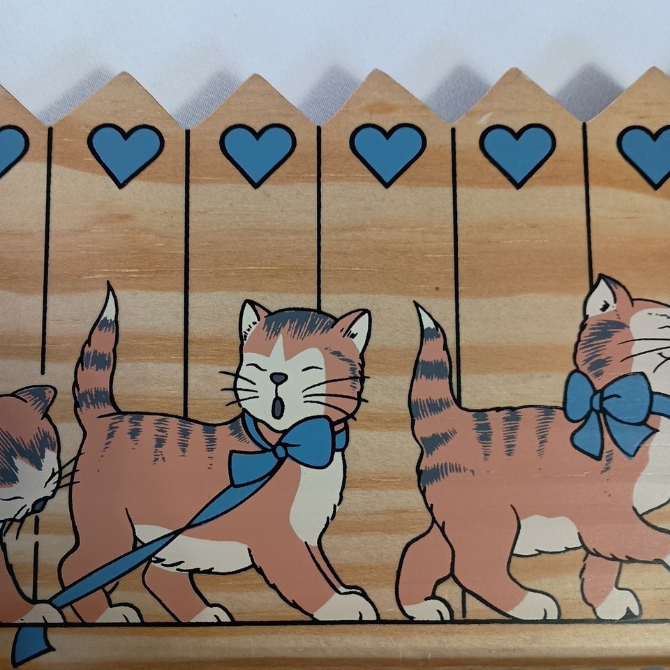 - Wooden Towel Holder Hanging Rack Mom Cat And Kittens Country Cottagecore