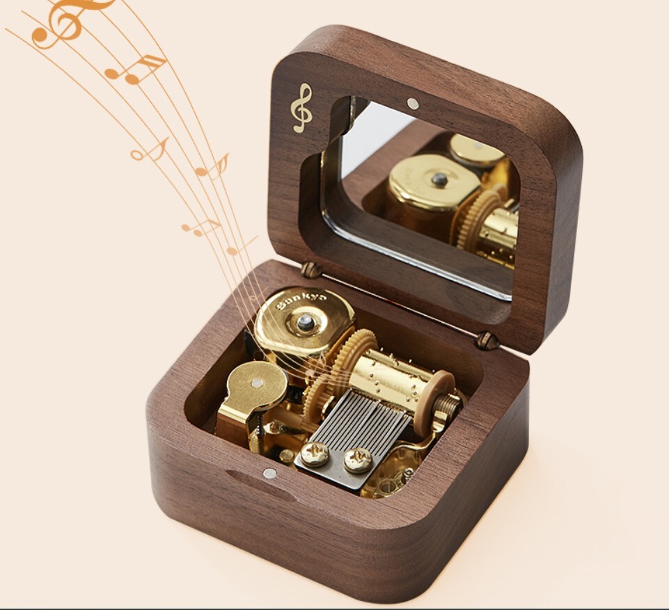 - Wooden handmade Sankyo mechanical music box-Free custom music