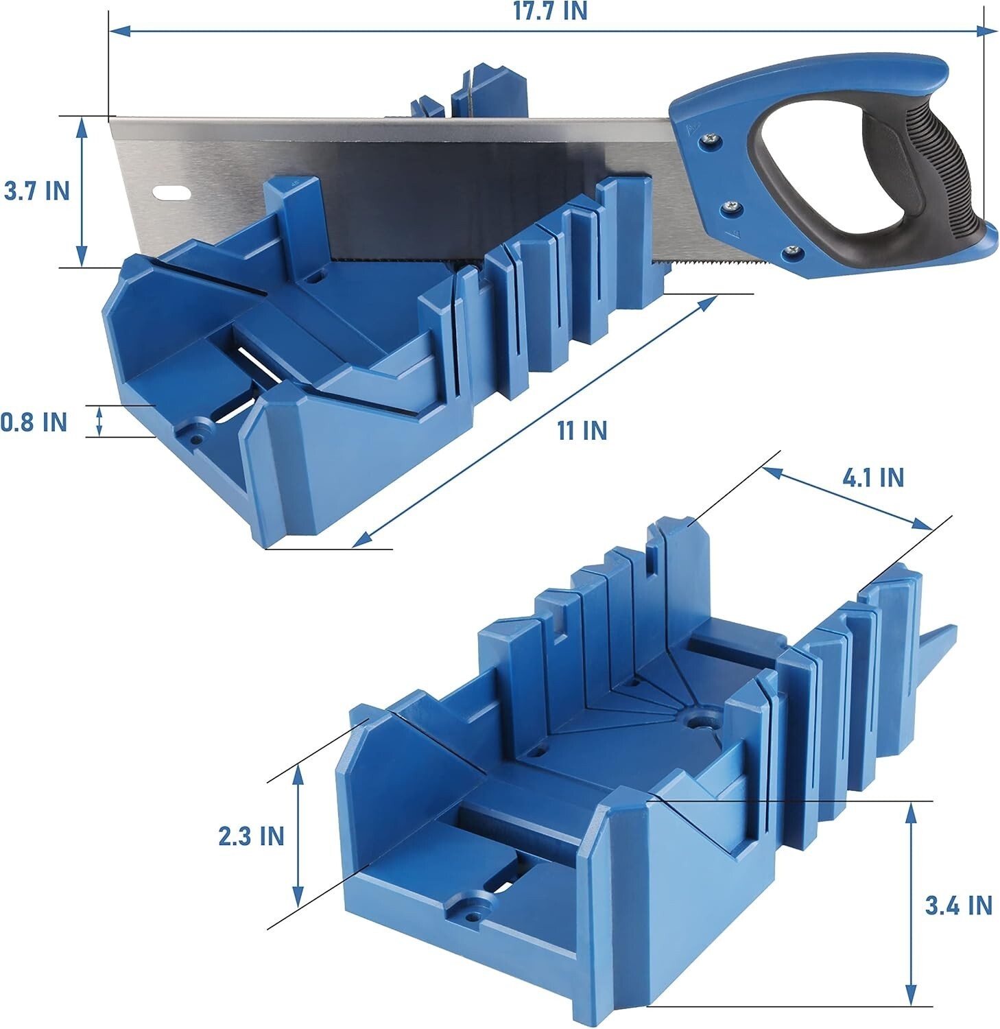 Upgrade your woodworking toolkit with this comprehensive miter box set, designed for precision and durability. The set includes a versatile 14" hand saw and a sturdy ABS miter box measuring 11" x 5" x 3.4"?perfect for creating accurate angled cuts at 90, 45, and 22-1/2. Crafted from rugged materials, this durable set ensures of reliable performance for all your craft projects. Whether you're building frames, shelves, or other woodwork, this kit makes precision cuts easy and efficient.