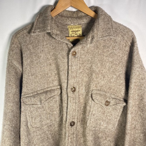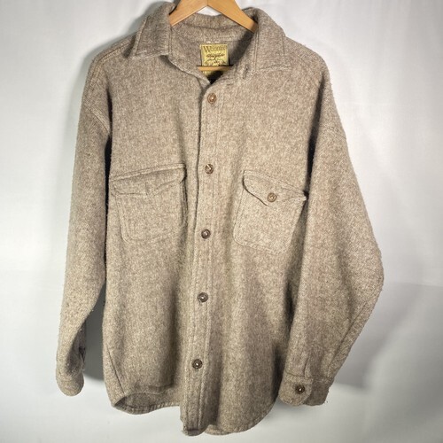 - Woolies Button Heavy Chamois Brown Wool Shirt Jacket Sz XL Vintage