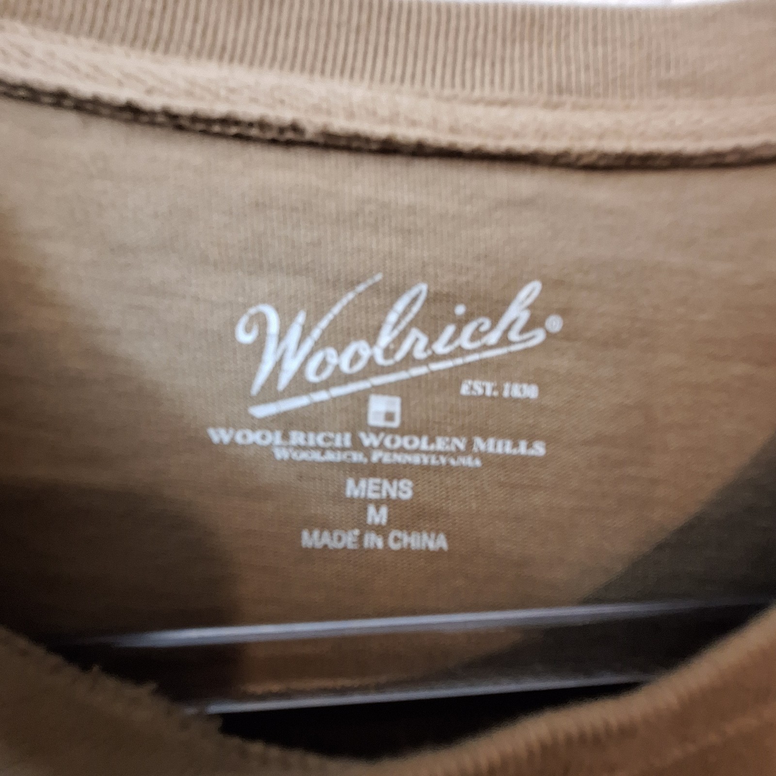Woolrich Mens Medium Long Sleeve Crew Neck Cotton Brown Walnut Shirt